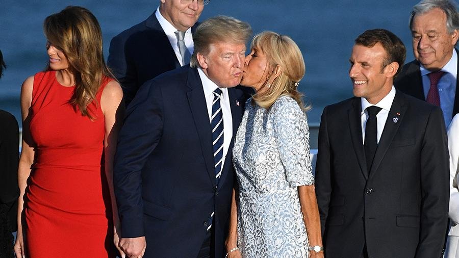 В кадр также попал момент, когда Мелания Трамп приветствовала поцелуем в щеку премьер-министра Канады Джастина Трюдо.