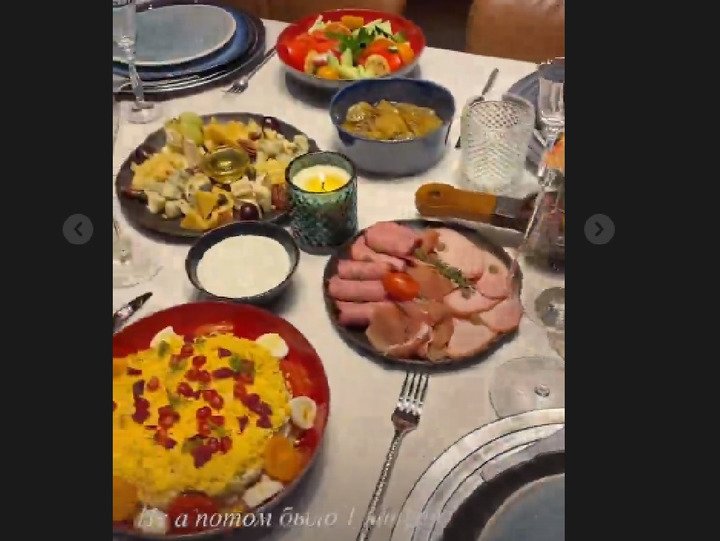 Также звездная актриса продемонстрировала остатки с новогоднего стола. Многое осталось и на следующий день.
