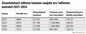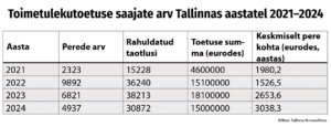 „Sissetulekust sõltuva toetuse saajate arv on viimastel aastatel märgatavalt vähenenud. See on suuresti seotud Tallinna linna uuele infosüsteemile üleminekuga, kus peetakse perede kohta unikaalset arvestust, kuna toetust määratakse just perele, mitte üksikindiviidile,“ selgitab Luide.