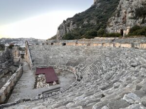 Just siin, Myras, teenis 4. sajandil piiskopina preester nimega Nikolaus Myrast, keda maailm tunneb Püha Nikolaus Imetegijana. Muide, pärit on ta samuti nendest paikadest – kunagisest suurest Lüükia linnast Patarast, mille varemeid saab samuti rannikul näha.