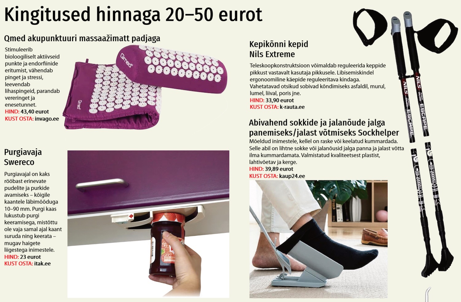 Teiseks peab see olema tõeliselt mugav: vähendama koormust kätele, silmadele ja liigestele, lihtsustama olmetoiminguid ning võimalusel aitama kaasa üldisele heaolule ja tervise hoidmisele.