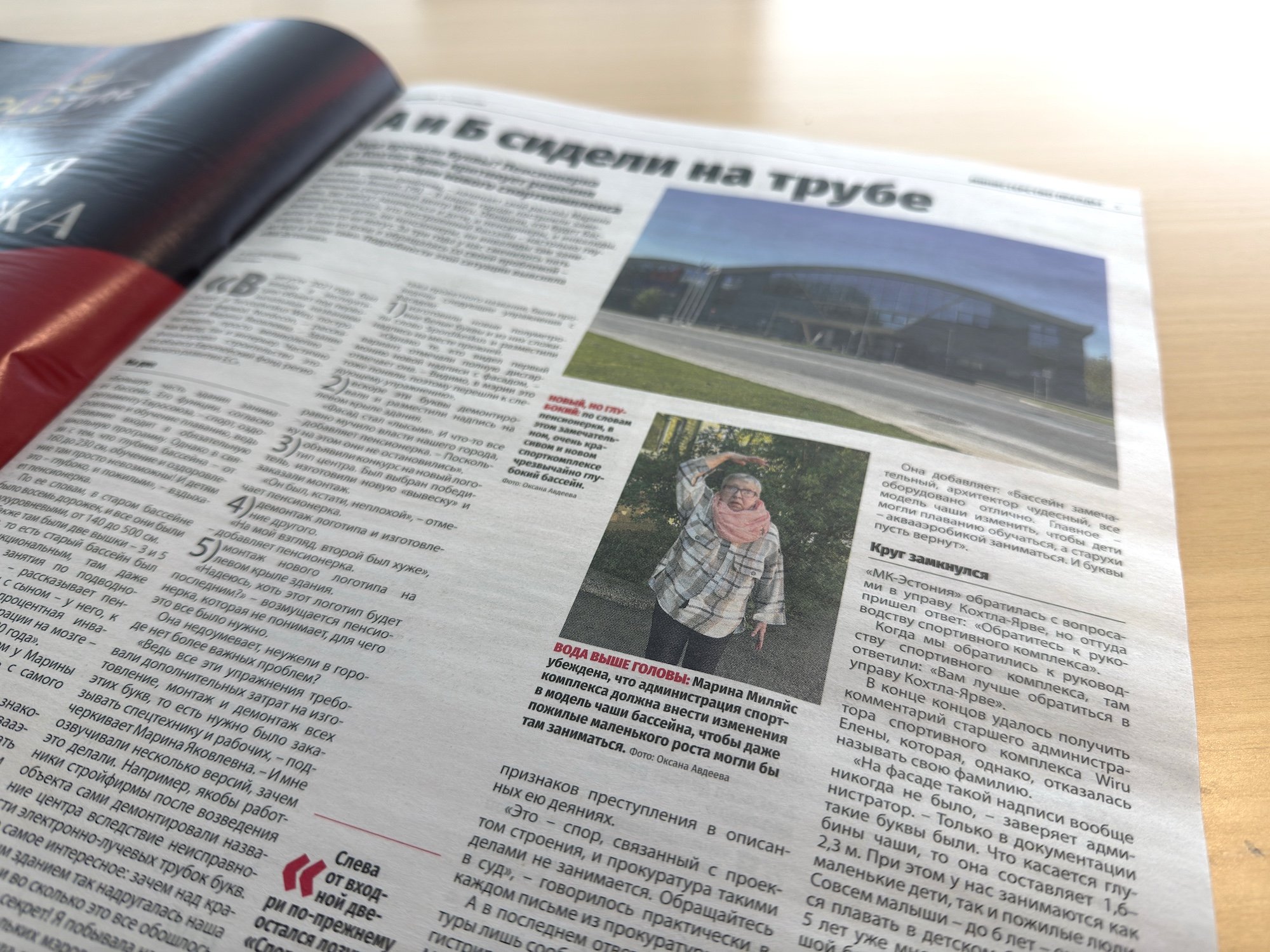 „Suur tänu artikli „A ja B istusid torul“ eest, mis käsitles meie linna basseini ja seda, kuhu kadus algne nimetus Wiru spordi- ja tervisekeskuse fassaadilt. Artikkel tekitas suurt vastukaja. Ja objekti fotol on suurepäraselt näha, et fassaad on – noh, selline vaeseke, paljas orb! Ma kogusin allkirju – otse meie tänaval, et selline nimetus tõepoolest oli, kuigi administratsioon seda eitab,“ kirjutab lugeja Marina Miljais Kohtla-Järvelt.