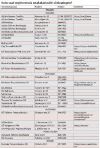 • Tallinna Eriarstikeskus, Linnamäe tee 3, 5.korrus, tel +372 608 2218 (E–R 8:30–19:00, L 9:00–15:00)