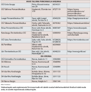 • Narva Haigla, Narva, Haigla 5, tel. 357 2737 (8:00–16:00)