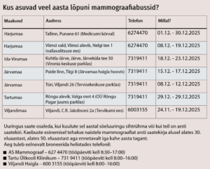2025. aastal kutsutakse tasuta rinnavähi sõeluuringule kõiki naisi sünniaastaga 1951, 1953, 1955, 1957, 1959, 1961, 1963, 1965, 1967, 1969, 1971, 1973, 1975.