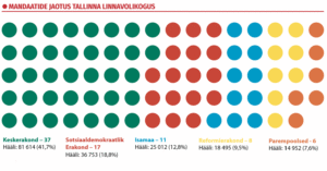 Käesoleva aasta 19. oktoobril lõppes Eestis hääletamine kohalike omavalitsuste valimistel. Valimisaktiivsus ületas 59%, mis on Riigi Valimisteenistuse andmetel riigi ajaloos teine tulemus. Üle-eestiliselt saavutas häälte arvu poolest esikoha Keskerakond. Pealinnas, kus linnavolikogus on 79 kohta, said keskerakondlased 37 mandaati, jäädes absoluutsest enamusest napilt ilma. Järgnevad sotsiaaldemokraadid, Isamaa, Reformierakond ja Parempoolsed. Lisaks olid need esimesed kohalikud valimised, kus kolmandate riikide kodanikel, kellel puudub ELi kodakondsus, hääleõigust ei olnud.