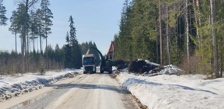 «От такого вреда больше, чем пользы, поэтому спиленные запасы лежат около года и просто подсыхают, – комментирует Эркки Этверк. – Их частенько можно увидеть по обочинам дорог, они иногда раздражают людей, но делать нечего – в лесу это не оставить, потому что в таком случае будет крайне неудобно работать, ведь на месте сразу две машины – техника, которая перемалывает древесину, и огромный грузовик, который отвезет гранулы к точке назначения. Еще один момент, почему кучи лежат довольно долгое время – запасы. У нас всегда должен быть запас древесины, потому что заказчикам материал нужен здесь и сейчас, например, нам в январе будет очень сложно объяснить клиенту, что мы ждем лета, потому что это оптимальный сезон. Так что работы ведутся круглый год, а вязанки лежат и ждут своего часа».