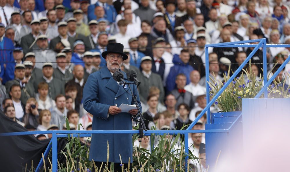 «Дорогая Эстония! Разве не хорошо нам всем быть вместе. И разве не хорошо воспринимать нашу Эстонию такой объединенной, где все поддержаны друг другом. Настоящая Эстония именно здесь. Мы видим это на Празднике песни и танца, от репетиций в народных домах и школьных залах до сегодняшнего большого праздника — она живет и существует. Эта настоящая Эстония, где каждый может быть самим собой и быть особенным, но при этом открытым для других и являть заботу друг о друге», — сказал глава государства.