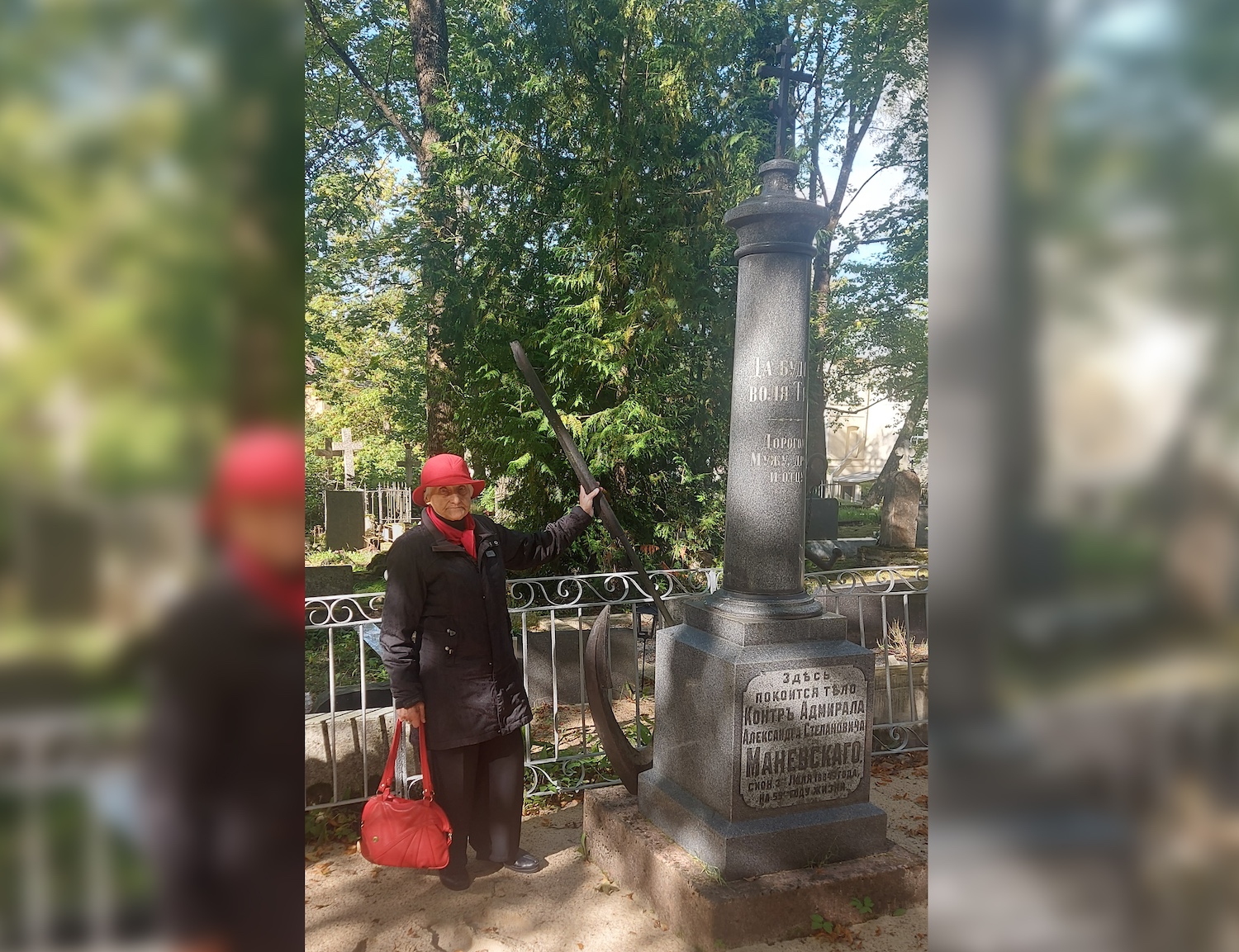 Мария Григорьевна ведет к могиле Александра Степановича Маневского. Она рассказывает, что это – русский контр-адмирал, уроженец Ревеля. Служил на Балтийском море и находился в распоряжении Императорского Санкт-Петербургского яхт-клуба. Командовал броненосной башенной лодкой «Лава», был начальником военно-исправительной тюрьмы Морского ведомства… В 1880 году произведён в чин контр-адмирала с увольнением в отставку. Именем контр-адмирала Александра Степановича Маневского названы мыс в заливе Ольги и прилегающая к нему бухта на Дальнем Востоке России. Здесь же похоронен сын контр-адмирала.