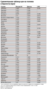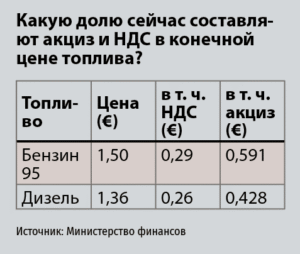 - Дизель: 1,55 евро/литр