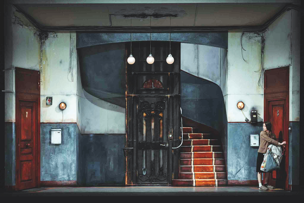 Сценическая реальность, придуманная замечательным художником Ириной Комиссаровой, вроде бы абсолютно узнаваема – лестничная клетка старого дома, проработанная до мельчайших деталей, старинный лифт, потертые стены с почерневшей электропроводкой. И – не покидающее с первых минут ощущение тоски и тревоги. В безмолвной цикличности происходящего в этом странном подъезде (а первые полчаса актеры не произнесут ни слова) сразу чувствуется какая-то безнадежность.
