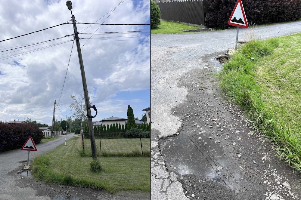 Представители Маарду приезжали, что-то отметили – и все! Вода течет до сих пор – деньги тоже, соответственно, утекают – асфальт разрушен, столб электричества рядом покосился, место, куда вода утекла, тоже размыто, а воз и ныне там.