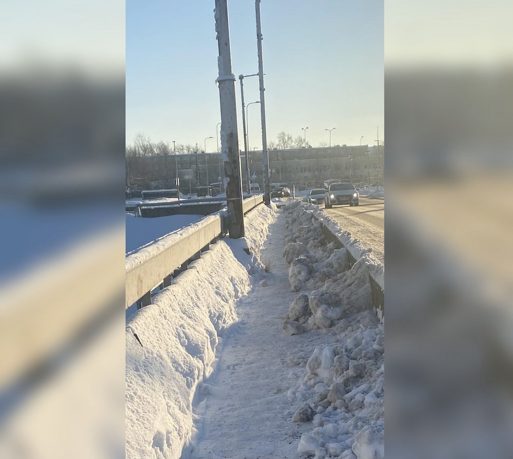 Но нам пришлось долго с малышом не ходить в бассейн, потому что ужасная нечищенная дорожка. Я живу на Лийкури, и по этому мосту до бассейна – самый короткий путь. Не идти же от Лийкури в другую сторону, до Котка, и потом обратно в ту сторону? А если надо маме, допустим, сходить элементарно за продуктами в «Максиму»? Как это с ребенком сделать?