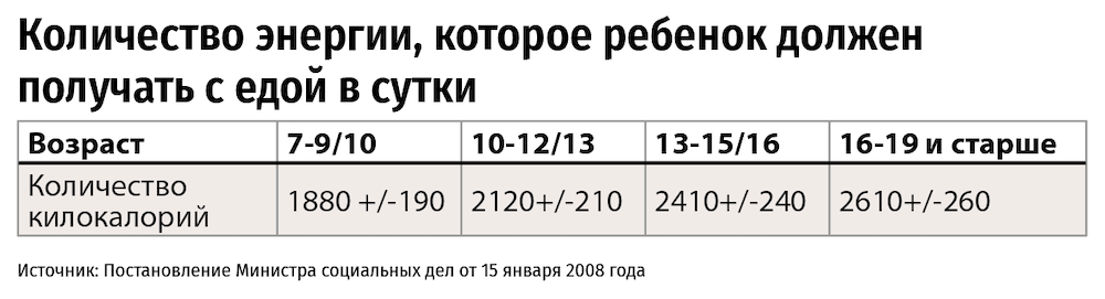 Источник: «Требования к здоровому питанию в дошкольных учреждениях и школах».