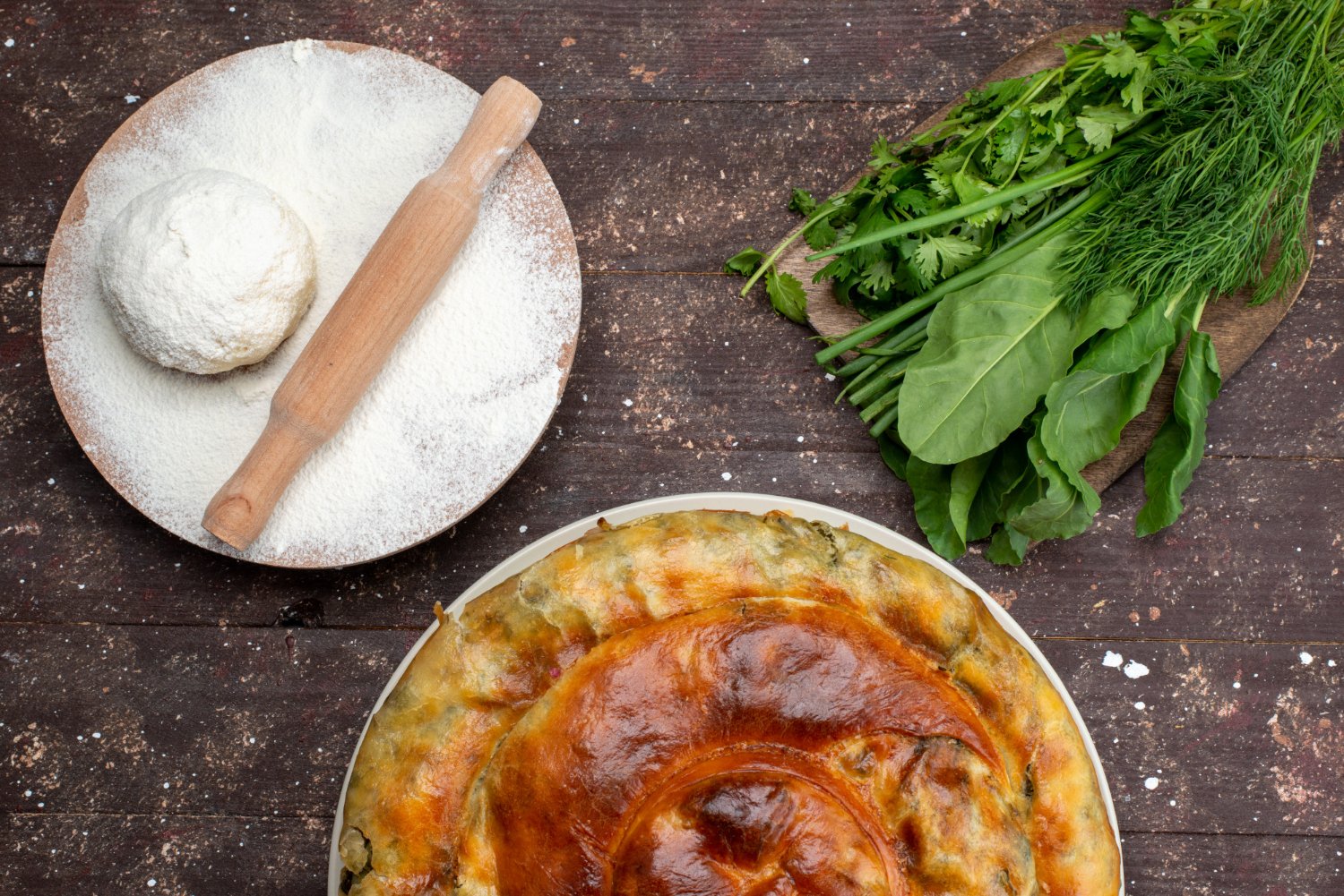 Слегка надрежьте тесто ножом и смажьте его чайной ложкой оливкового масла. В конце воткните оставшиеся веточки тимьяна в центр пирога.