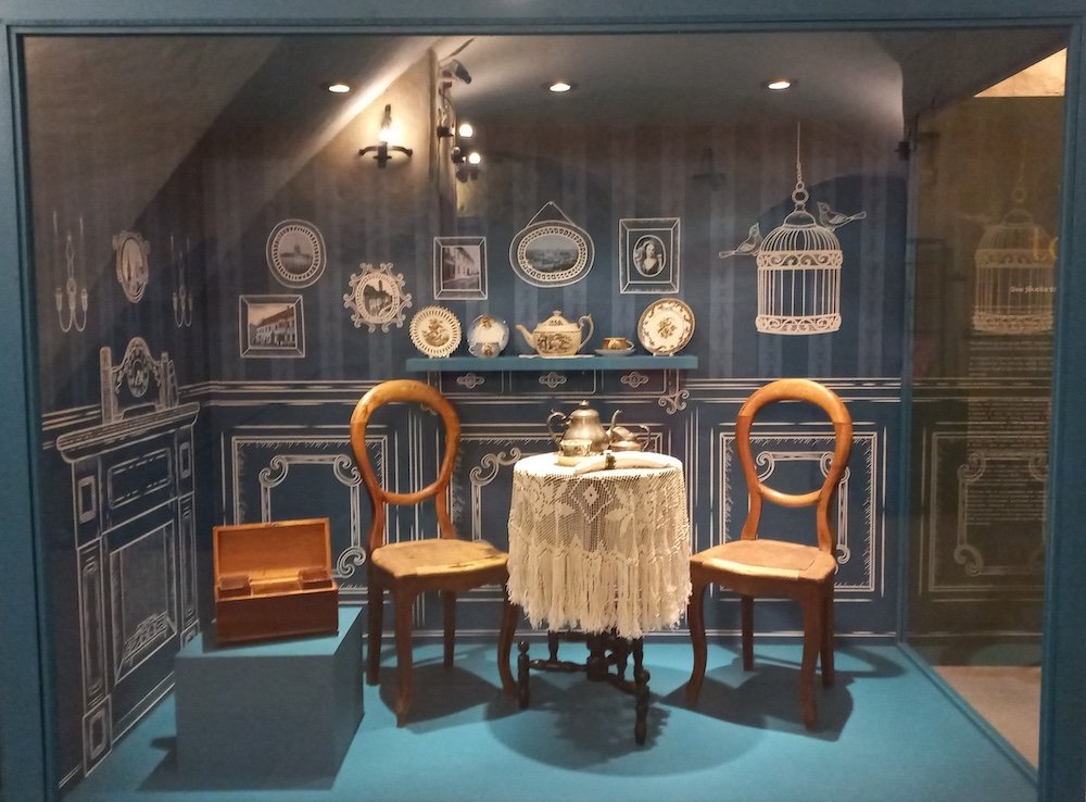 Главное качество выставки – атмосферность: долгие ноябрьские и декабрьские вечера за столом под абажуром лампы, чашка ароматного чая, неторопливые беседы – все это оживает в воображении благодаря экспозиционному решению.