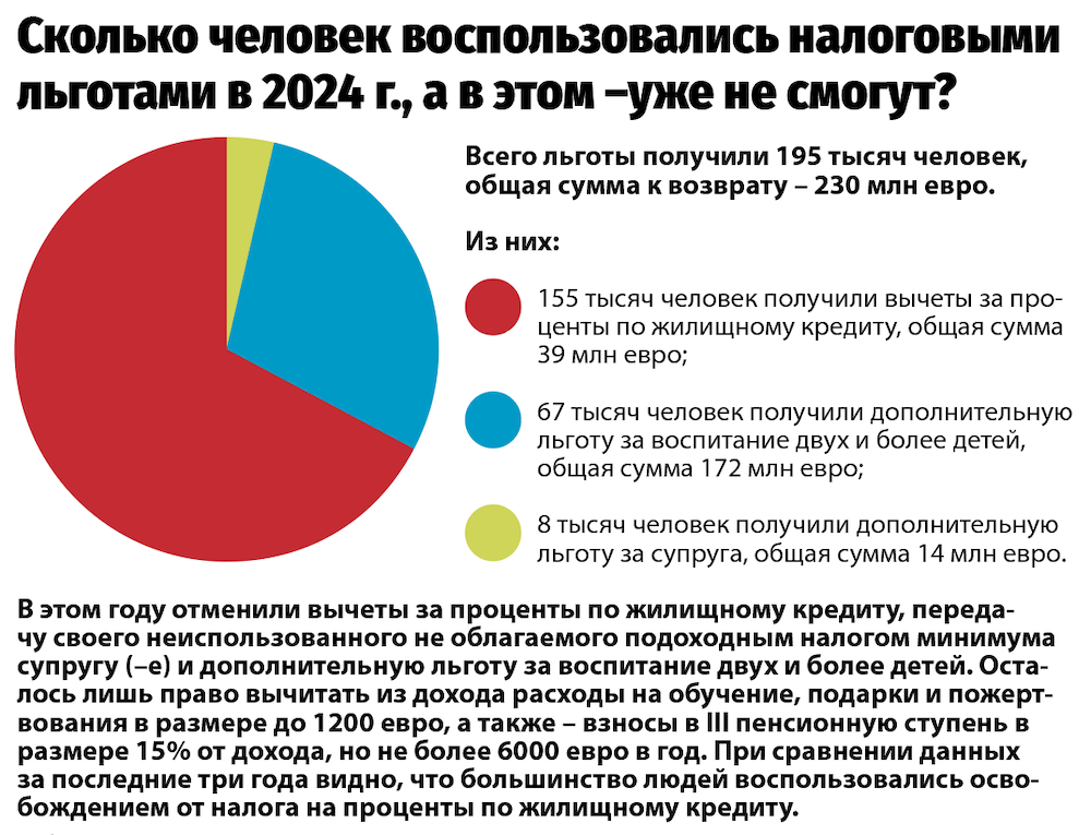 – Если посмотреть на статистику деклараций за 2023 год, то было представлено 786 926 деклараций. По ним вернули переплаченный подоходный налог в размере 229 696 775 евро.