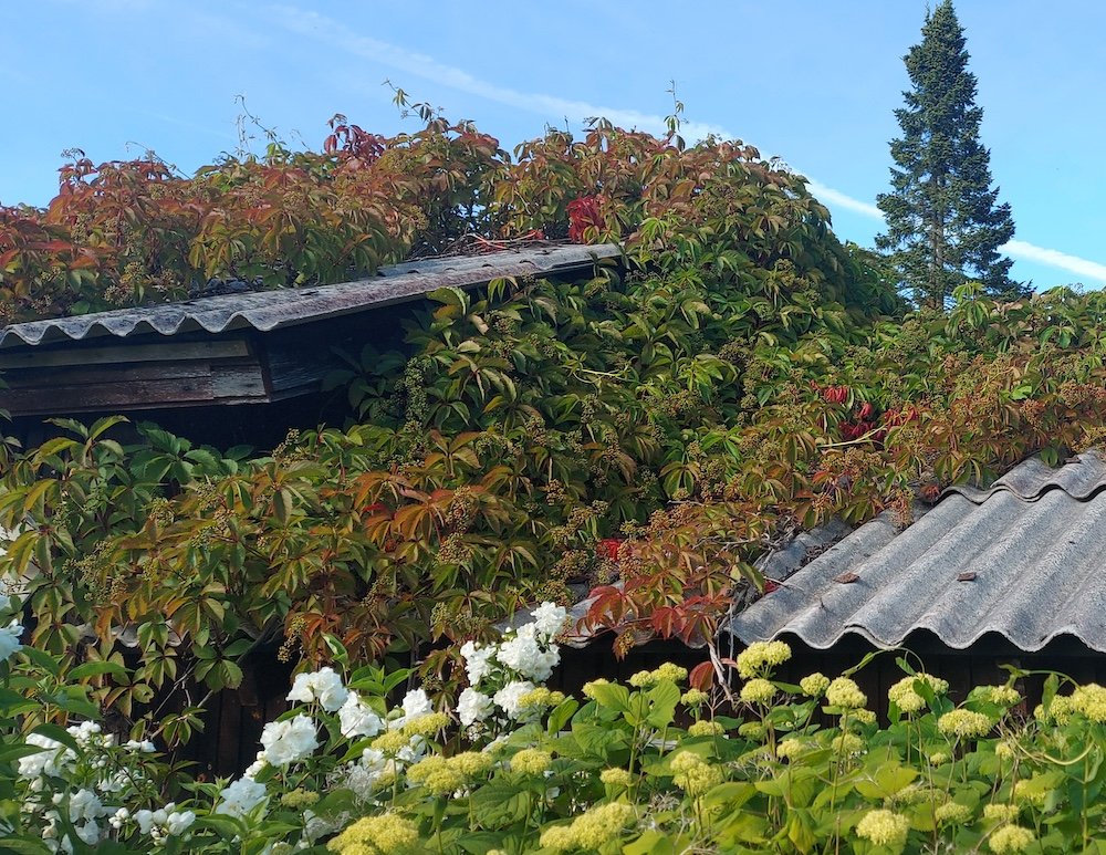 Затем нужно было залезть на крышу и снять с нее плети, которые всеми усиками держались за шифер и не желали отцепляться по-хорошему – так что и шифер частично пришел в негодность, и пришлось в числе прочего озаботиться новым покрытием для крыши.