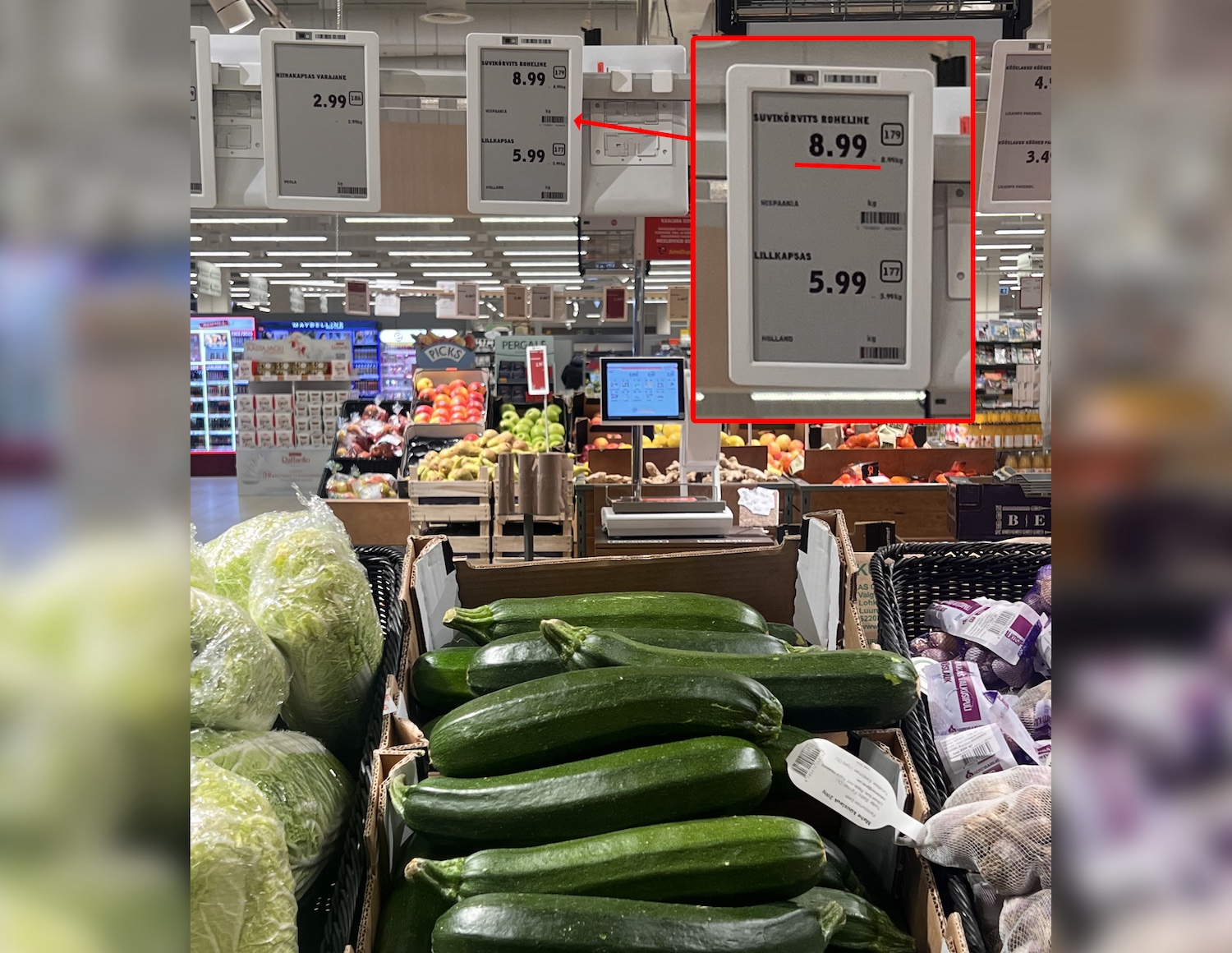Также обращайте внимание на ценники: белый цвет означает обычную цену, желтый – сниженную цену, а красный – акционное предложение или цену по карте Aitäh.