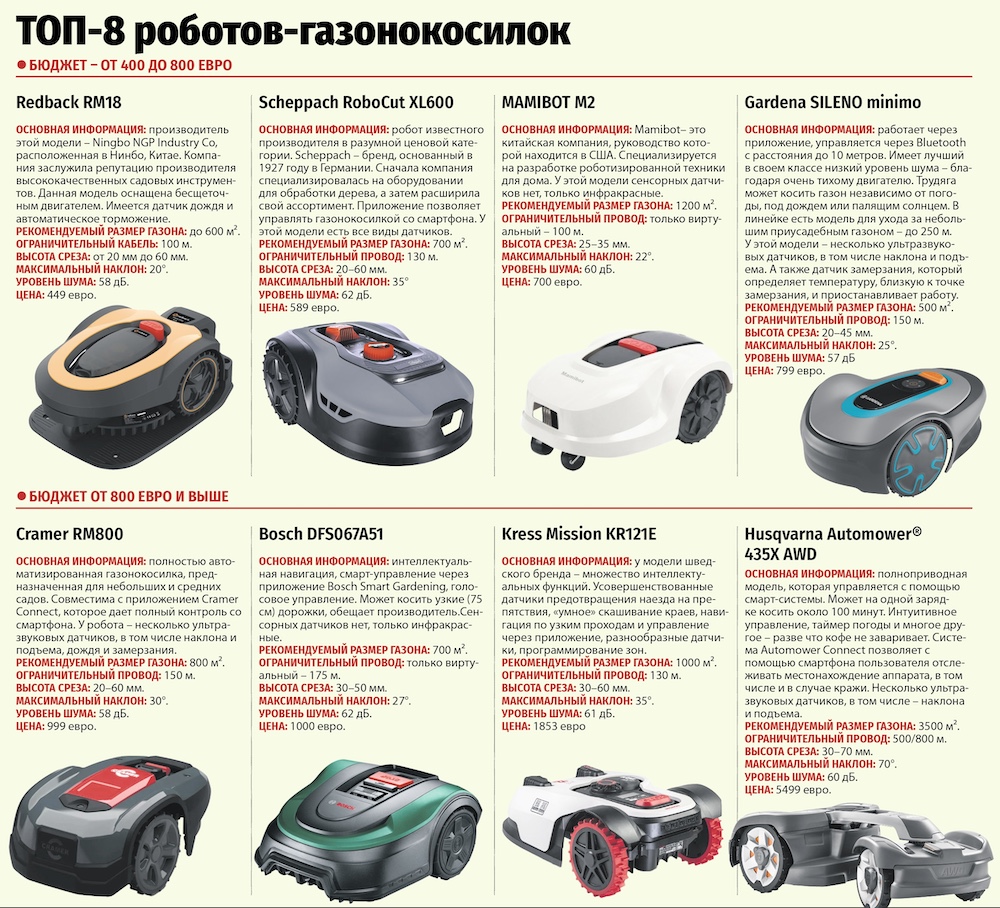 Бюджет также имеет значение: стоимость роботов-газонокосилок очень разная – от 500 до 6000 евро.