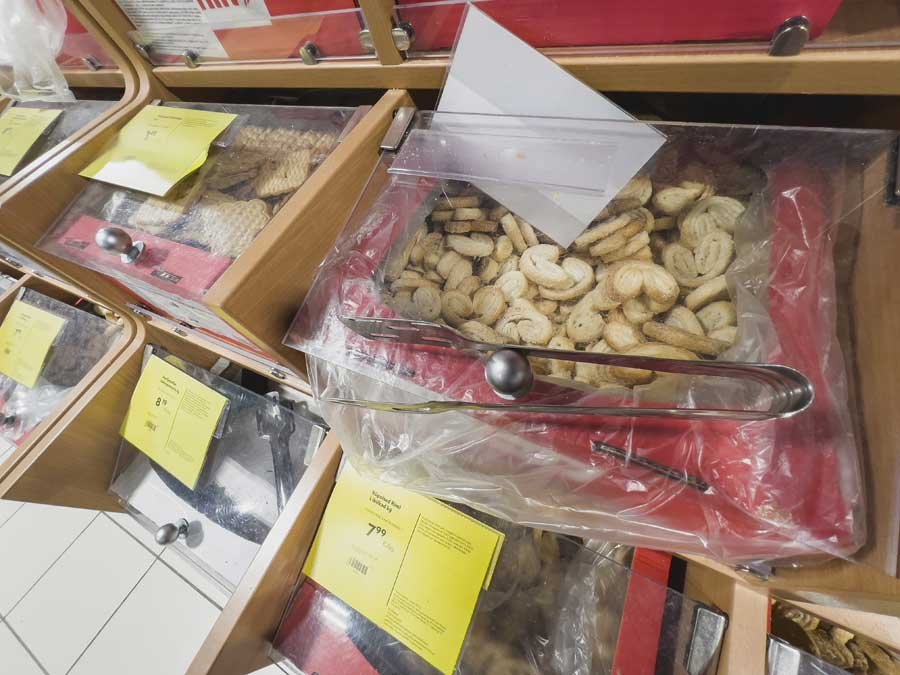 Жительница Мустамяэ Маргарита поделилась наблюдениями: «В нашем «домашнем» магазине ящички с конфетами расположены очень низко, у самого пола, и, хотя они все снабжены крышками, они все же не герметичны, а значит, пыль, которую ногами поднимают люди, не может не проникать в них, тем более что некоторые покупатели забывают закрывать крышку. В ящиках, где лежат конфеты в фантиках, можно обнаружить развернутые и раздавленные конфеты – кто-то, наверное, хотел узнать, какая в конфетах начинка. А щипцы и совочки, которыми нужно набирать сладости, не защищены от падения на пол, и насколько они чистые, остается лишь догадываться».