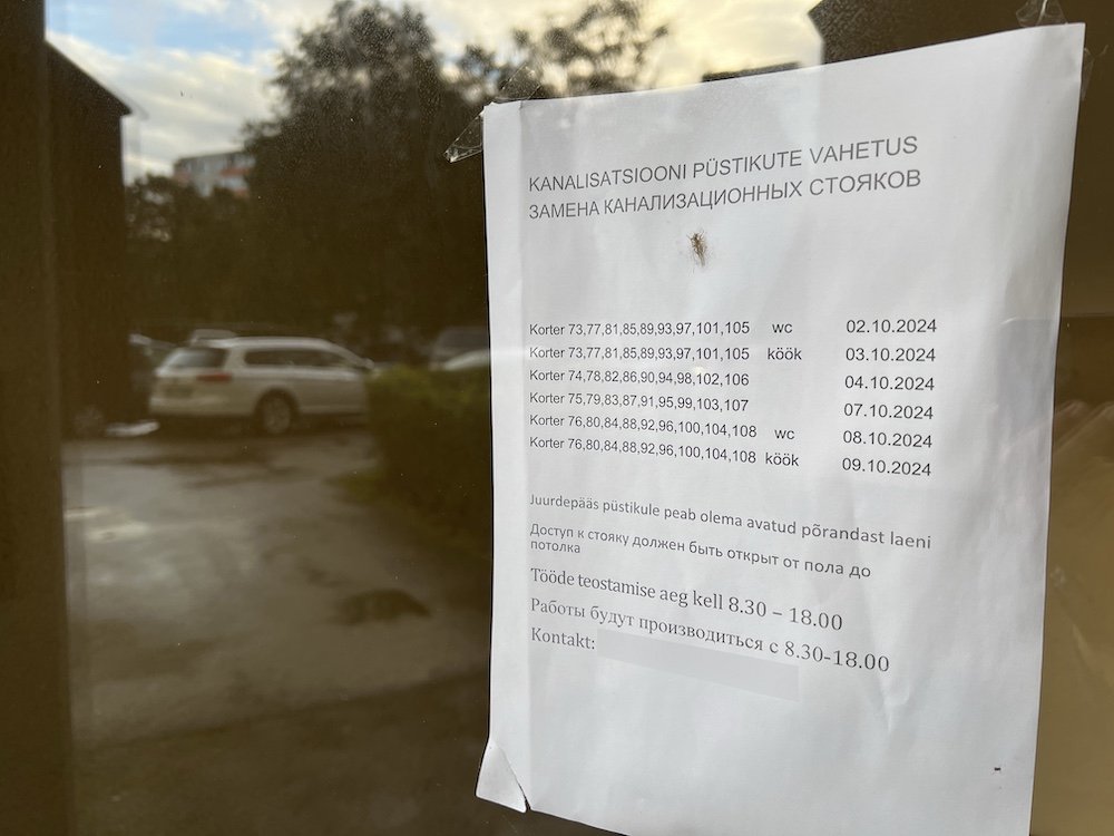 «Мой номер в открытом доступе, и на все обращения владельцы квартир всегда получают развернутый ответ. Информация о замене стояков появляется на инфостендах, которые имеются в каждом подъезде, на стеклах входных дверей подъездов, а также и в действующей группе квартирного товарищества в сети Фейсбук, в которой мы также сразу отвечаем на возникшие вопросы», – добавляет Т. Лаук.