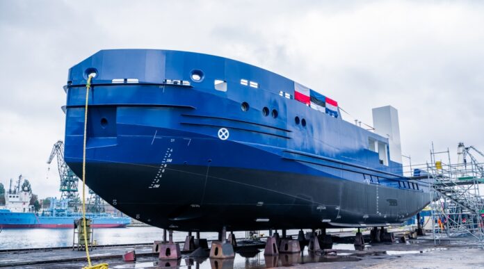Проектирует и строит судно эстонская компания Baltic Workboats. Корпус был изготовлен на верфи Damen в Гданьске, откуда его доставили в Насва на судоверфь Baltic Workboats, где и будет завершено строительство. Крещение и торжественный спуск нового судна на воду состоятся весной 2026 года, тогда же, по традиции, будет объявлено и его имя.