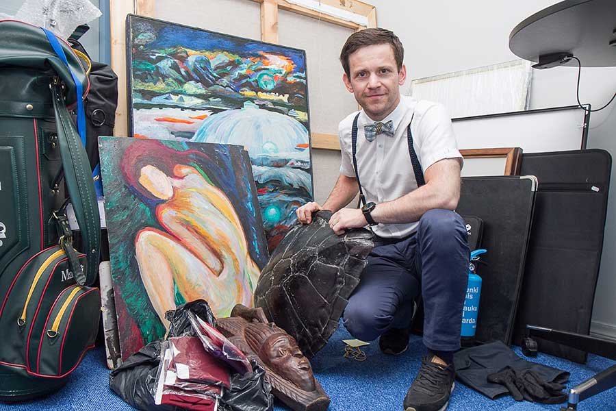 Кабинет судебного исполнителя Ристо Сеппа меньше всего напоминает типичный офис.  Скорее это пещера с сокровищами, где никогда не знаешь, что найдешь. Вдоль стен – картины и клюшки для гольфа, позади рабочего стола – стол с россыпью монет… И много всего остального. Все это – конфискованное имущество, которое нужно разобрать, оценить и продать.