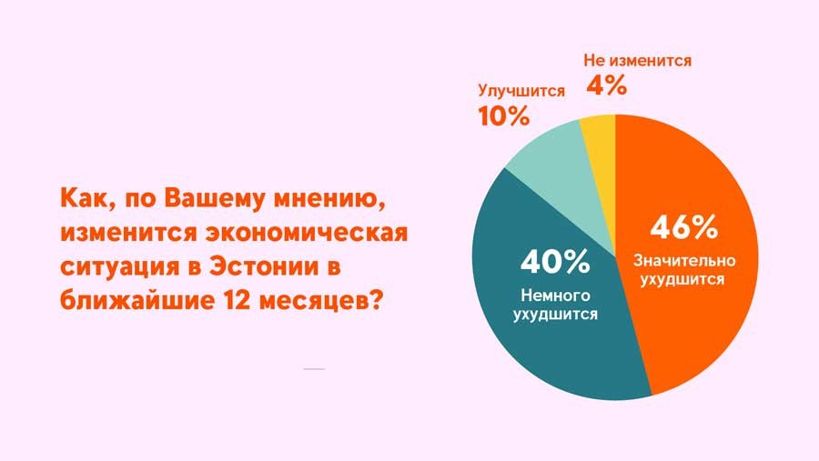 «Беспокойство и неуверенность больше ощущаются в определённых группах общества. Люди с базовым образованием наиболее негативно оценивают перспективы возможностей справиться с ситуацией. По сравнению с эстонцами, русские жители больше беспокоятся о своём финансовом положении. В то время как почти четверть русских очень беспокоятся о своей способности обеспечить членов своей семьи, среди эстонцев лишь 10% очень беспокоятся о способности семьи обеспечить себя», – сказала руководитель Института финансов Swedbank Мари-Лийс Яэгер.