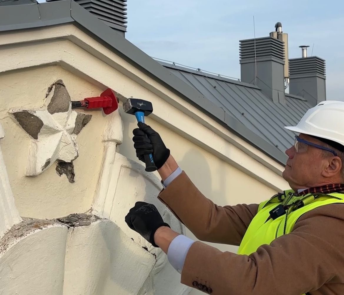 Декоративные элементы на фасаде здания по адресу Валдеку, 13 будут удалены в соответствии с утвержденным планом действий, согласованным с Департаментом охраны памятников старины. По оценке Департамента охраны памятников старины, символами оккупации являются флаги октябрят и пионеров, а также пятиконечная звезда, расположенные на фронтоне главного фасада, а также пятиконечные звезды, находящиеся на концах крыльев здания. Элемент фронтона будет удален целиком, а со стороны двора будут удалены только пятиконечные звезды.