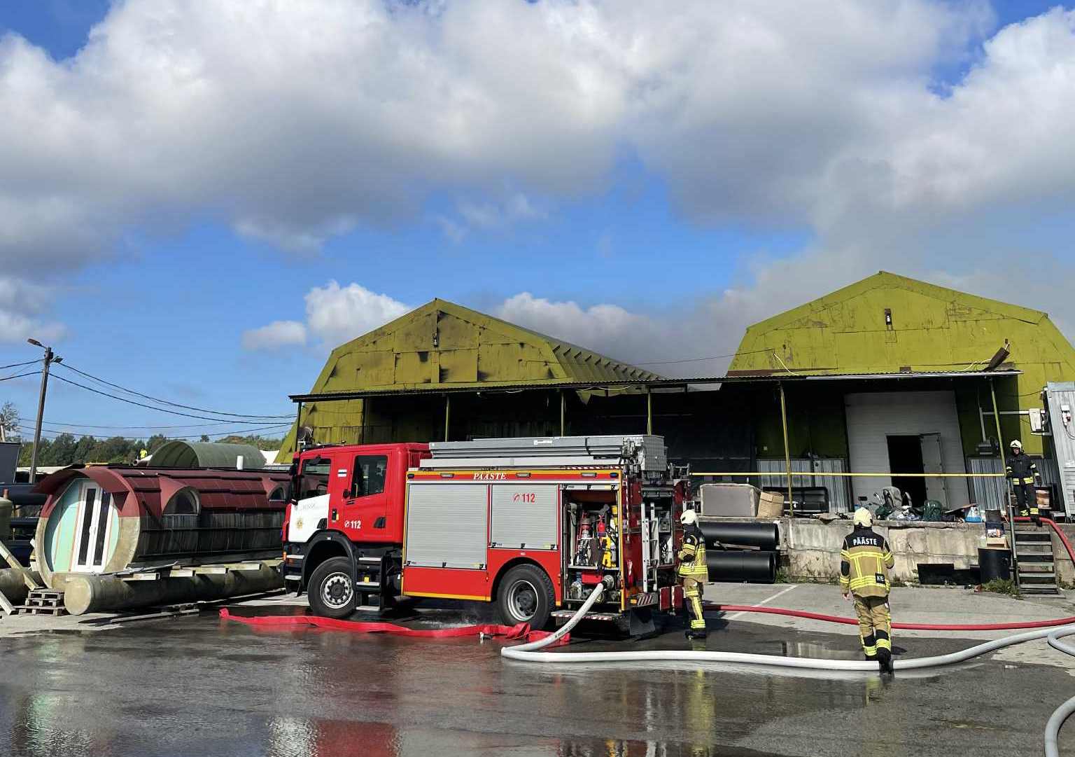В Центр тревоги в четверг в 9:54 поступило сообщение, что в волости Раэ, в поселке Лагеди, на улице Техасе открытым пламенем горит промышленное ангарное здание, и видно много густого черного дыма. Рядом находится ещё один ангар. По предварительной информации, предприятие занимается производством пластмассы.
