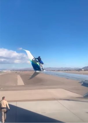 Алехандро Карлсон забрался на крыло самолета в аэропорту Лас-Вегаса. Этот эпичный момент сняли на видео пассажиры лайнера, который готовился к взлету, пишет Metro.