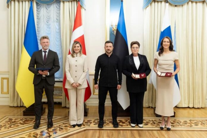 Наряду с супругой президента Эстонии Украина также наградила супругов глав государств Финляндии и Дании. Супруга президента Эстонии Сирье Карис и супруга президента Финляндии Сузанна Элизабет Иннес-Стубб награждены орденом княгини Ольги первой степени, а супруг премьер-министра Дании Мартин Бо Тенберг — орденом Ярослава Мудрого пятой степени.