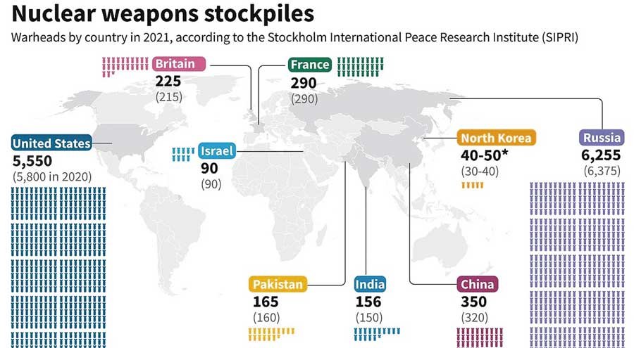 Количество ядерных боеголовок: 6255.