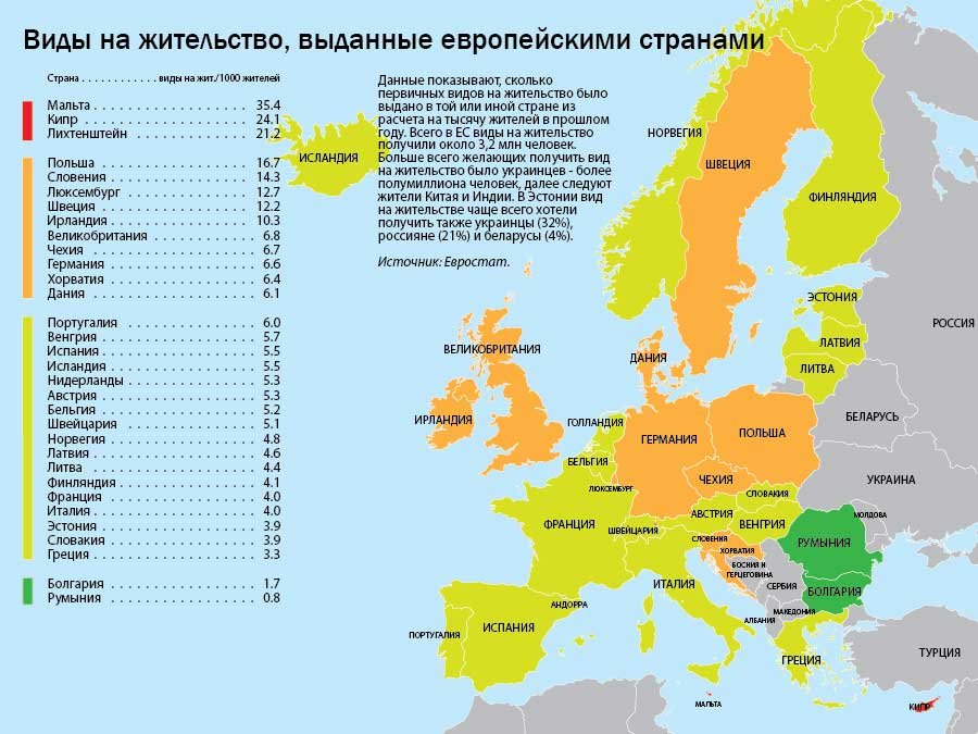 Всего в ЕС виды на жительство получили около 3,2 млн человек. Больше всего желающих получить вид на жительство было украинцев — более полумиллиона человек, далее следуют жители Китая и Индии.