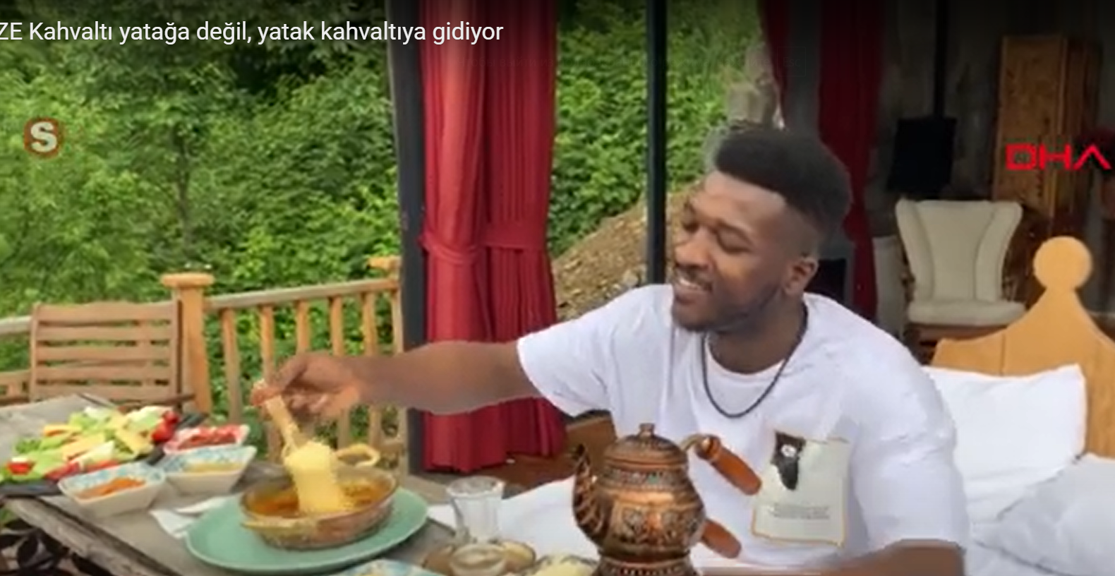 В Турции в районе Чамлыхемшин в Ризе, туристам, остановившимся в деревянных бунгало, расположенных на склоне холма, подают завтрак весьма необычным способом.