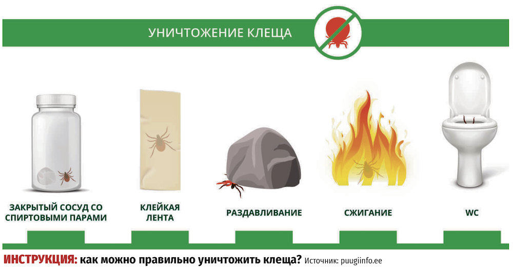 - Не проводите с клещом никаких манипуляций, например с использованием масла или крема, и не давите его, так как при этом возможно выделение большего количества возбудителей болезни.