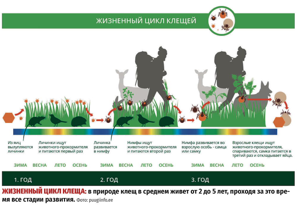 - В природе клещ в среднем живет 2-5 лет, проходя за это время все стадии развития.