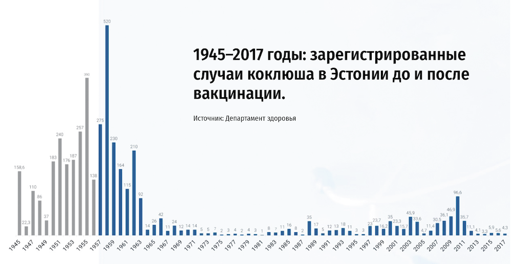 В Эстонии детей начали прививать против коклюша в 1957 году. В 1970-е и 1980-е годы количество случаев заболевания составляло всего лишь 3–4 на 100 000 населения.