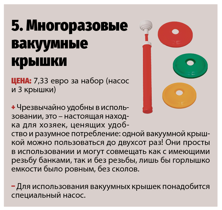 Крышки для банок – ответственный элемент, обеспечивающий герметичность и долговечность пищевых продуктов и домашних консервов. В магазинах Эстонии в сезон домашней консервации можно приобрести жестяные, алюминиевые, капроновые, твист-офф, а также многоразовые вакуумные крышки. Какую же выбрать?