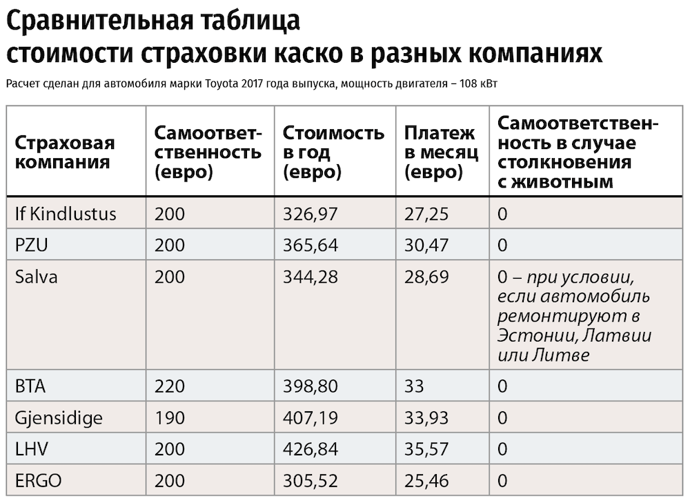 «В прошлом году 35% всех несчастных случаев с дикими животными произошли весной и 40% – осенью. В половине случаев происходили столкновения с косулями, и четверть всех таких происшествий была связана с мелкими животными. Средняя сумма страховой компенсации составила 2700 евро», – говорит руководитель филиала страховой компании Gjensidige в Эстонии Райдо Кирсисте.