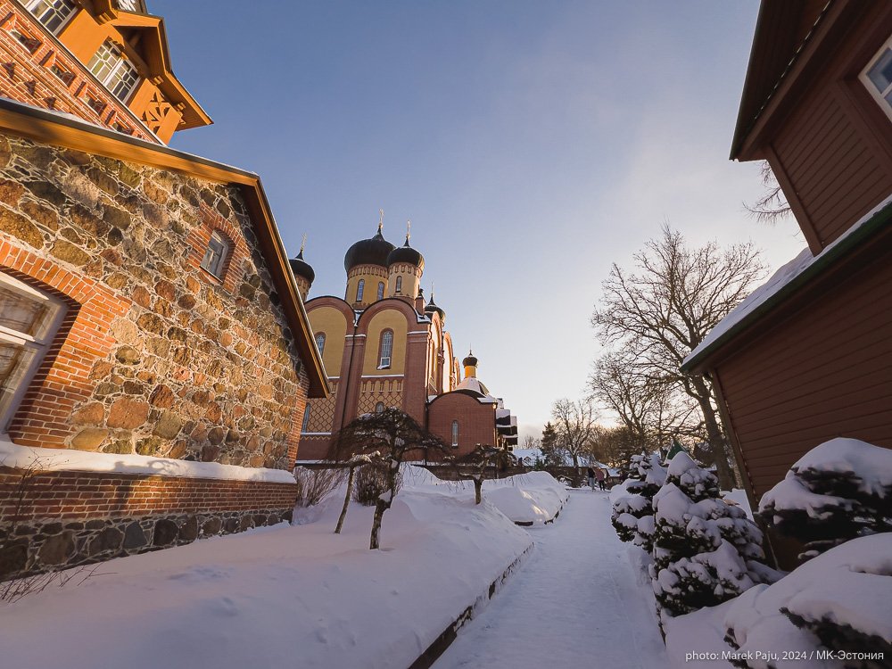 Несмотря на весьма сложные из-за погоды дорожные условия, поток паломников к Пюхтицкому монастырю в этот день был нескончаемым. На парковке можно было заметить автомобили как с эстонскими, так и с латвийскими, литовскими, украинскими номерами. И хотя приблизиться к горе Куремяэ мы смогли лишь преодолев вьюгу, гололед и плохую видимость, над монастырем небо было ясным, и время от времени солнце играло на золоченых крестах.